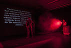 "Kommt sie, so gehe ich. Geht sie, so kann ich kommen.» In einem multimedialen Abenteuer wird ein Dreiecksverhältnis zwischen zwei verführerischen Geistwesen und einem Mann aufgedeckt. Eine turbulente Performance in drei Akten und ebenso vielen Gefühlszuständen.